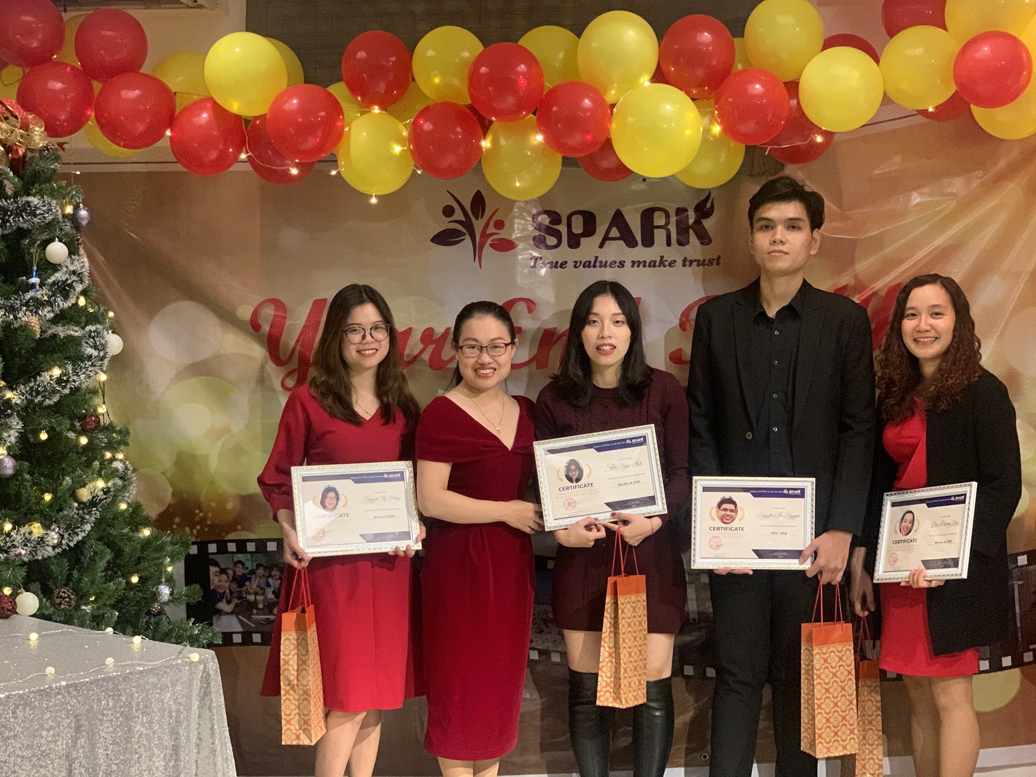 Sự kiện đầu tiên trong chuỗi hoạt động đón chào năm mới 2021 phải kể đến bữa tiệc cuối năm – Year End Party của cán bộ nhân viên và đội ngũ giáo viên đã đồng hành cùng Spark trong năm 2020 vừa qua. Trong một không gian lung linh lãng mạn cùng rượu vang, âm nhạc, chúng ta có cơ hội ngồi lại bên nhau cùng trò chuyện, nhìn lại những điều đã làm được trong năm vừa qua, lắng nghe những chia sẻ bổ ích thú vị và có những phần quà ý nghĩa dành cho những người đặc biệt đã nỗ lực trong công việc xứng đáng được ghi nhận và vinh danh.