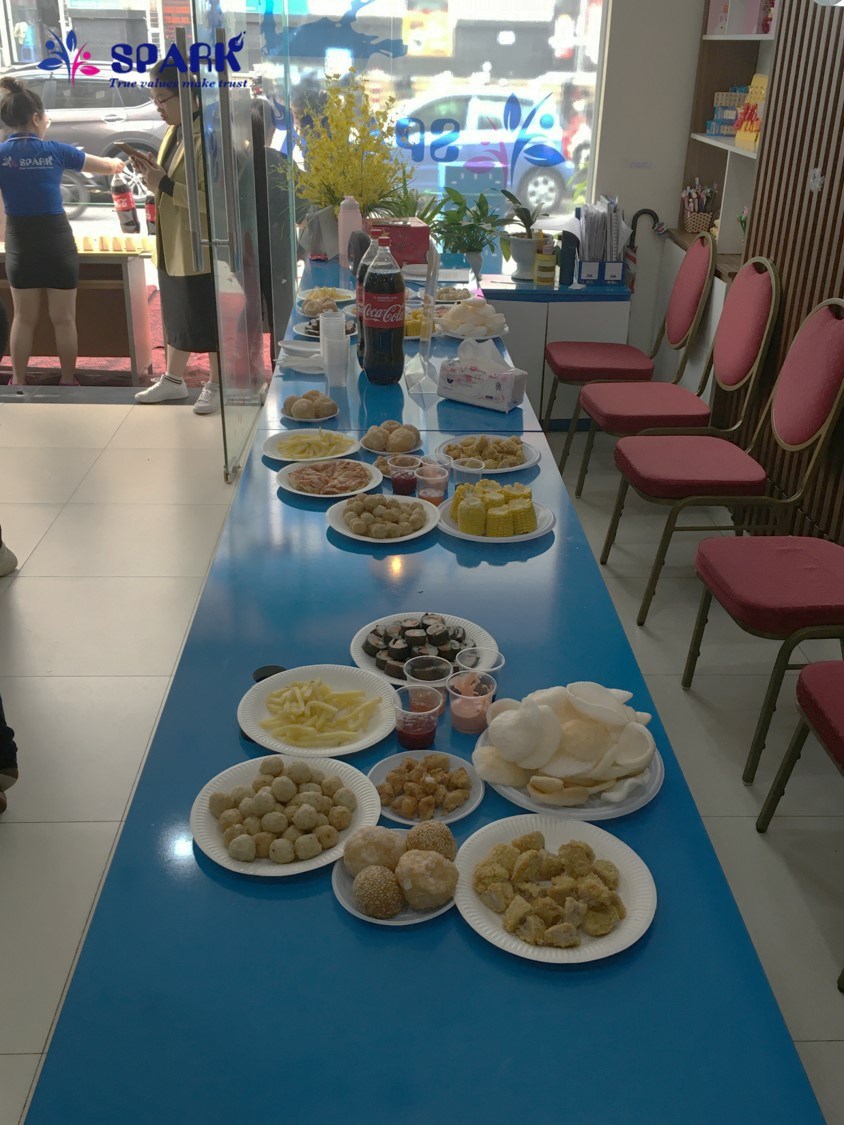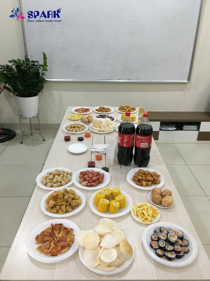 Khác với mọi ngày, hôm nay nhà Spark yêu thương trở thành “nhà hàng”, “rạp chiếu phim” phục vụ tất cả các bạn nhỏ. Với menu đồ ăn đa dạng với toàn là những món ăn yêu thích của các bạn nhỏ do chính tay các anh chị nhân viên từ các phòng ban trổ tài nấu nướng dành cho bữa tiệc.