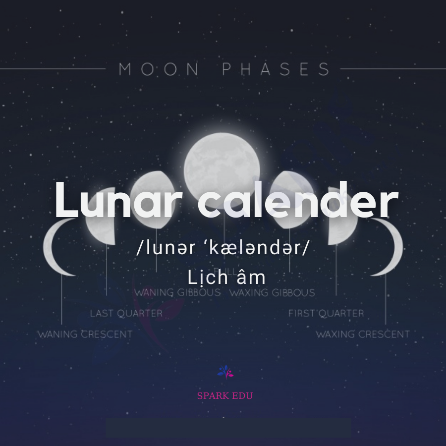 Là lịch tính theo vòng tuần hoàn của mặt trăng và được sử dụng tại các nước châu Á. Những ngày lễ gắn liền với lịch âm có thể kể tới như Tết Trung thu ( Mid- Autumn Festival), Tết nguyên đán (Lunar New year),...